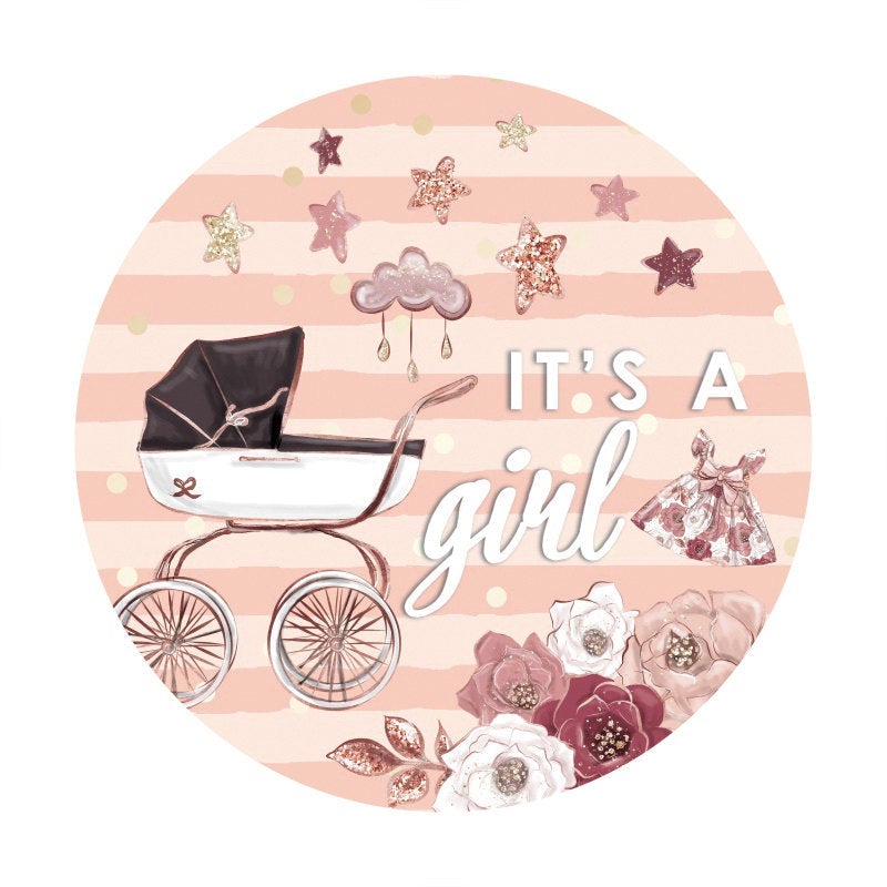 Es ist A Mädchen Baby Wagen Rosa Streifen Runden Baby Dusche Hintergründe