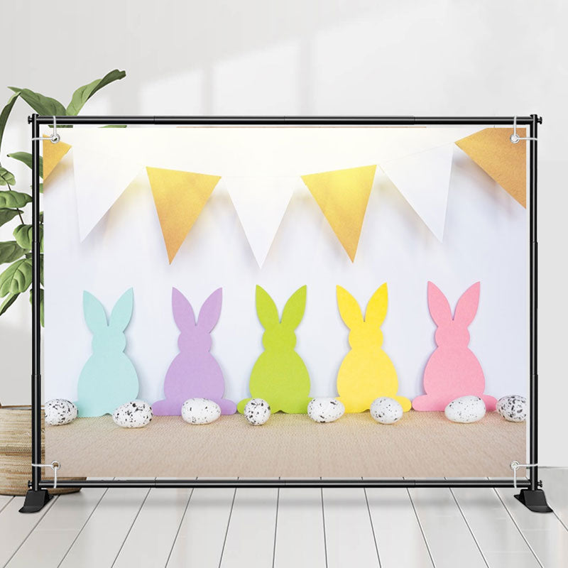 Farbig Kaninchen Flagge Weiß Eier Wand Ostern Hintergrund