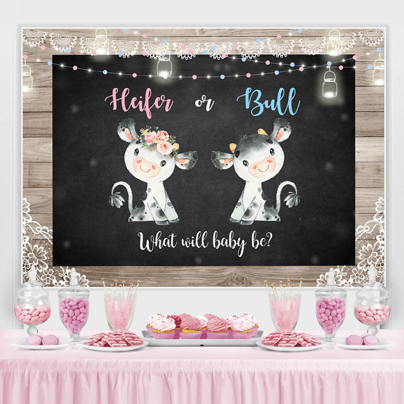Färse Oder Stier Schwarz Spitze Hölzern babydusche Party Hintergrund