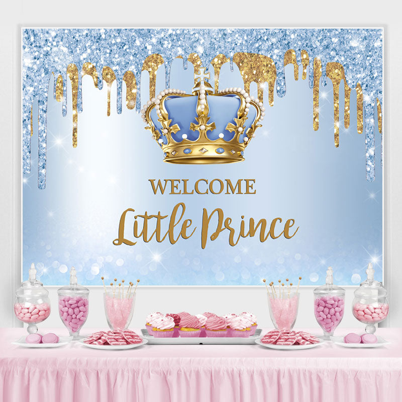 Funkeln Blau Willkommen Wenig Prinz Baby Dusche Hintergrund