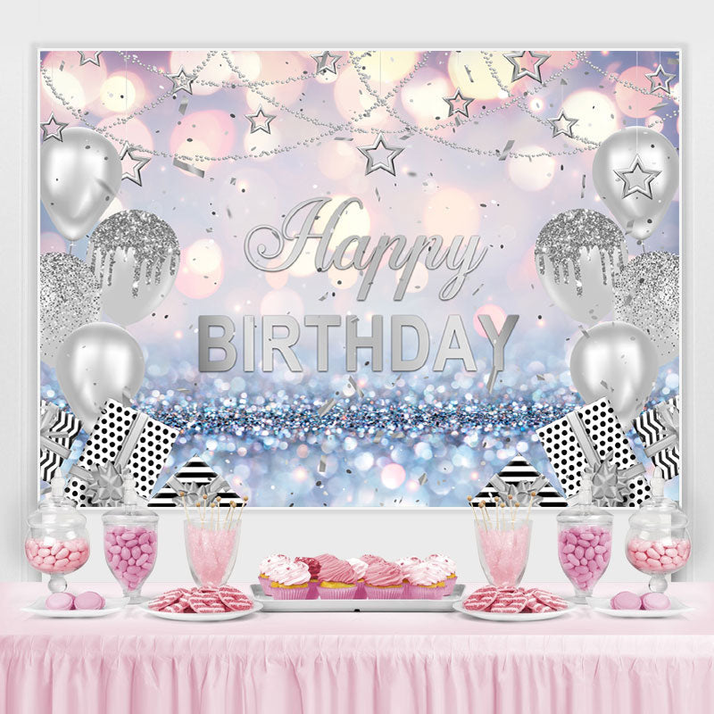 Funkeln Bokeh Silber Stern Luftballons Geburtstag Hintergrund