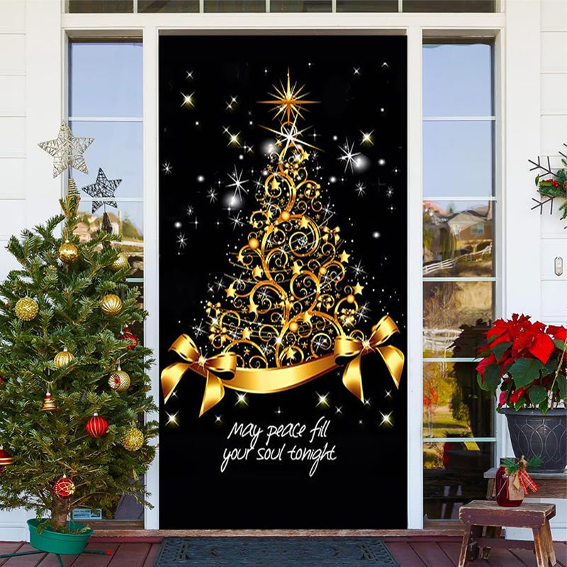 Funkeln Gold Bogen Binden Schwarz Weihnachten Tür Abdeckung