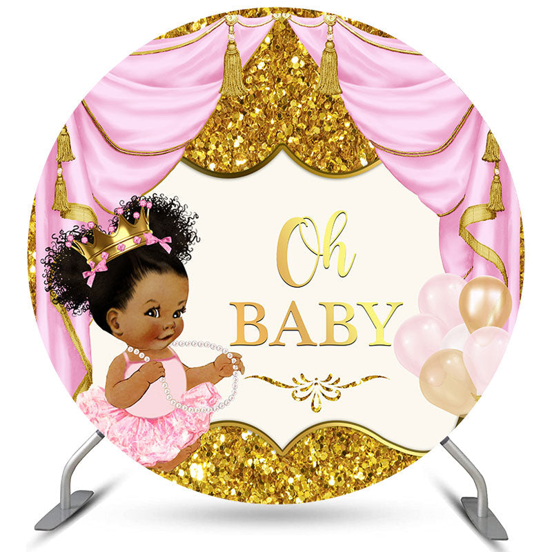 Funkeln Gold Heiß Rosa Mädchen Runden Babydusche Hintergrund