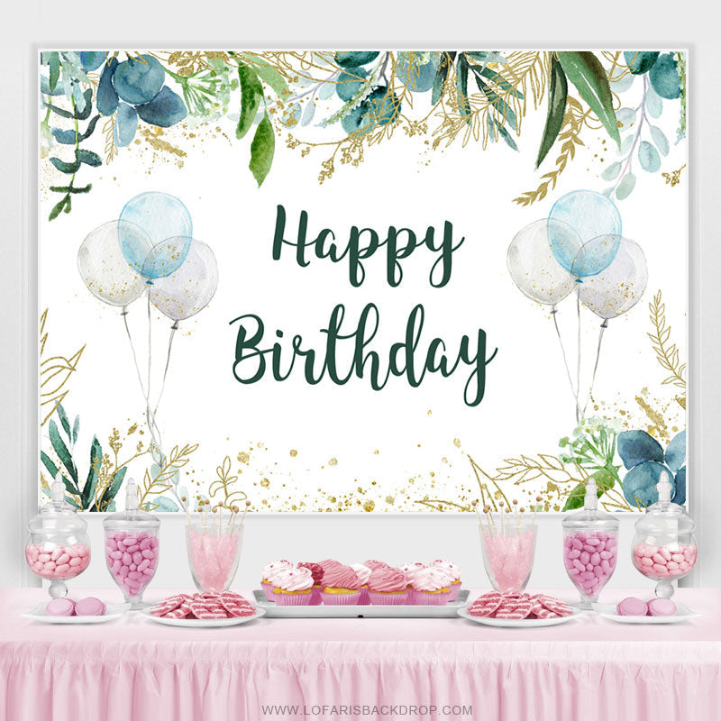 Funkeln Grün Blätter Und Luftballons Geburtstag Hintergrund