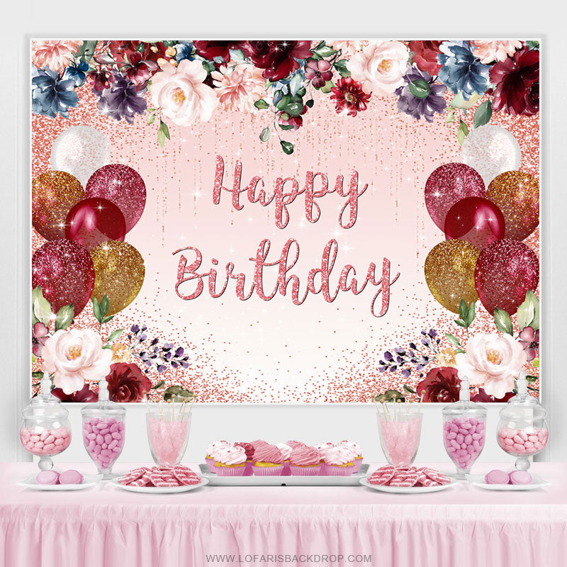 Funkeln Luftballons Und Blumen Glücklich Geburtstag Hintergrund
