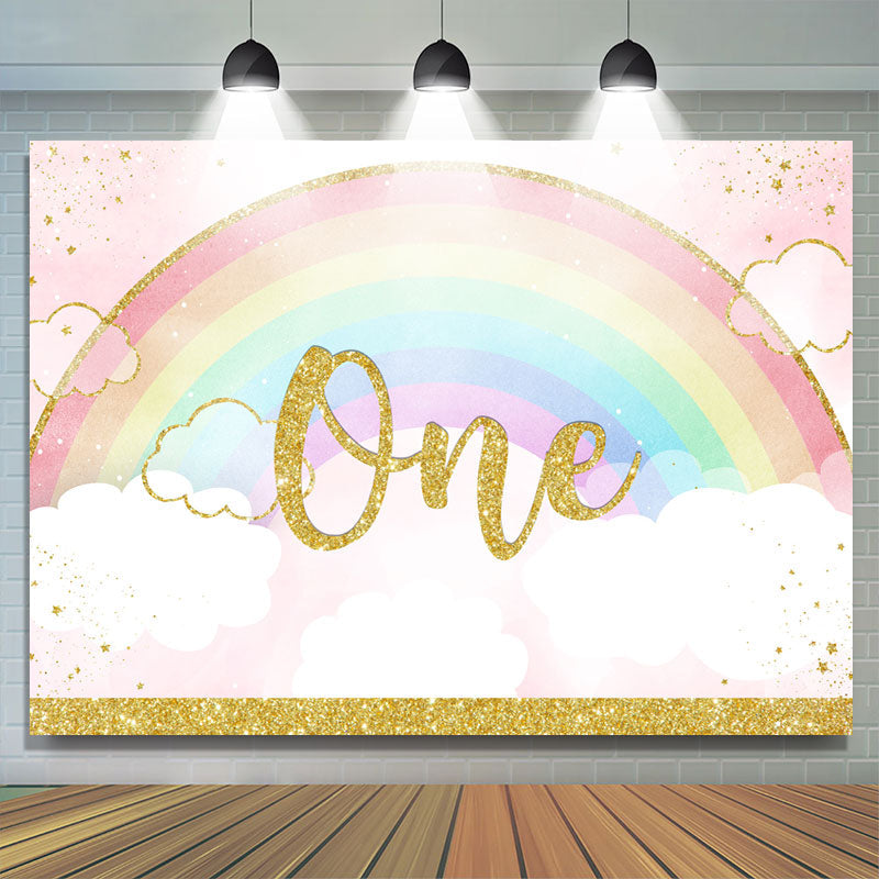 Funkeln Regenbogen Und Wolke Glücklich 1 Geburtstag Hintergrund