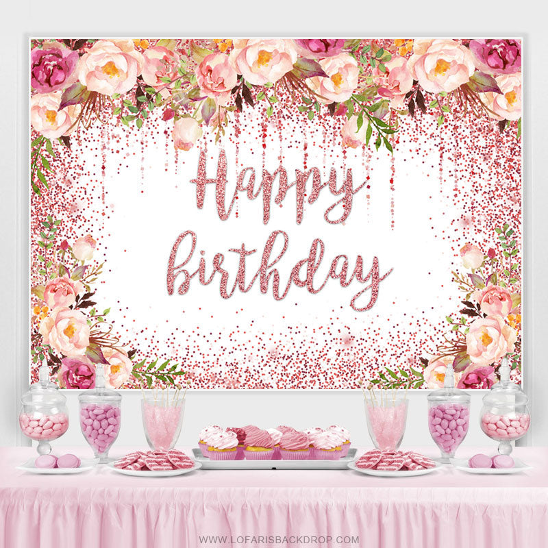 Funkeln Rosa Blumen Glücklich Geburtstag Hintergrund Für Mädchen