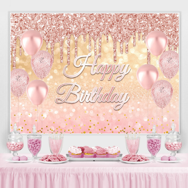 Funkeln Rosa Luftballons Rose Gold Glücklich Geburtstag Hintergrund