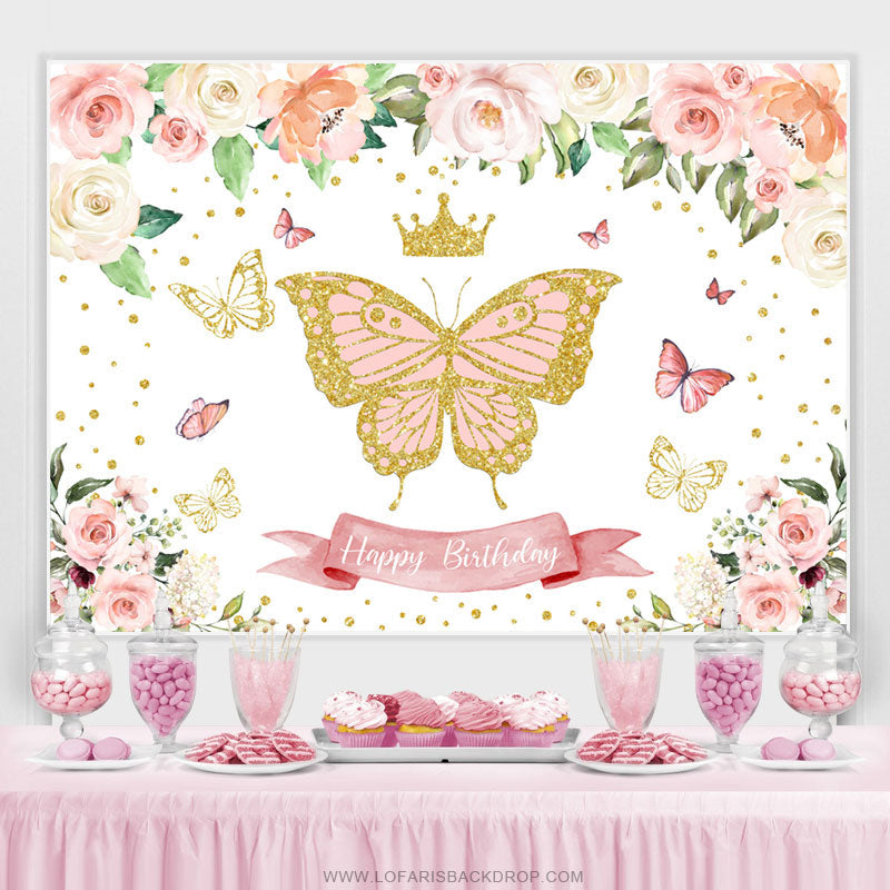 Funkeln Rosa Schmetterling Blumen Glücklich Geburtstag Hintergrund