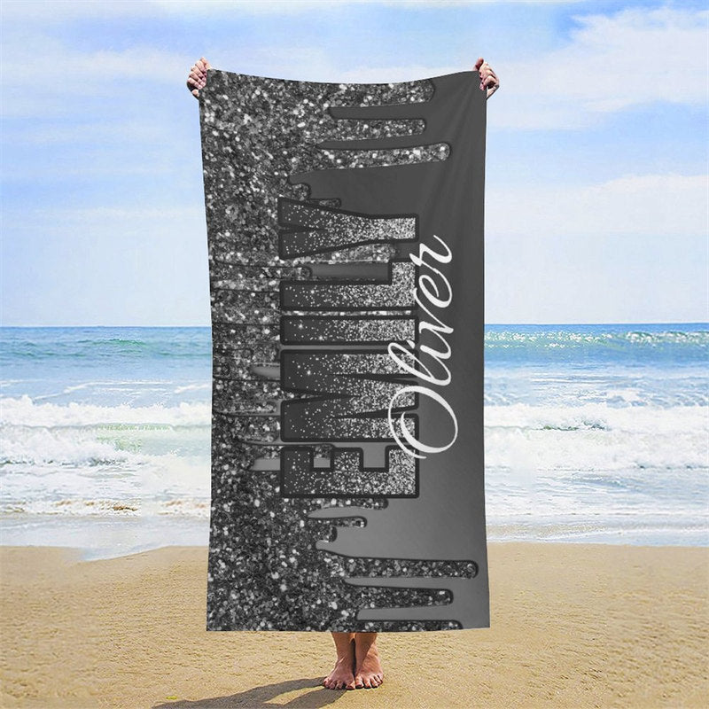 Funkeln Schwarz Silber Brauch Name Strand Schwimmbad Handtuch