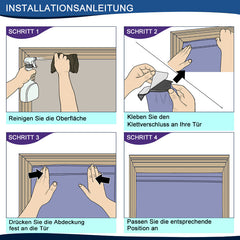 Unser Türbanner ist oben und unten mit Klettverschlüssen ausgestattet. Einfache Installation in weniger als einer Minute.