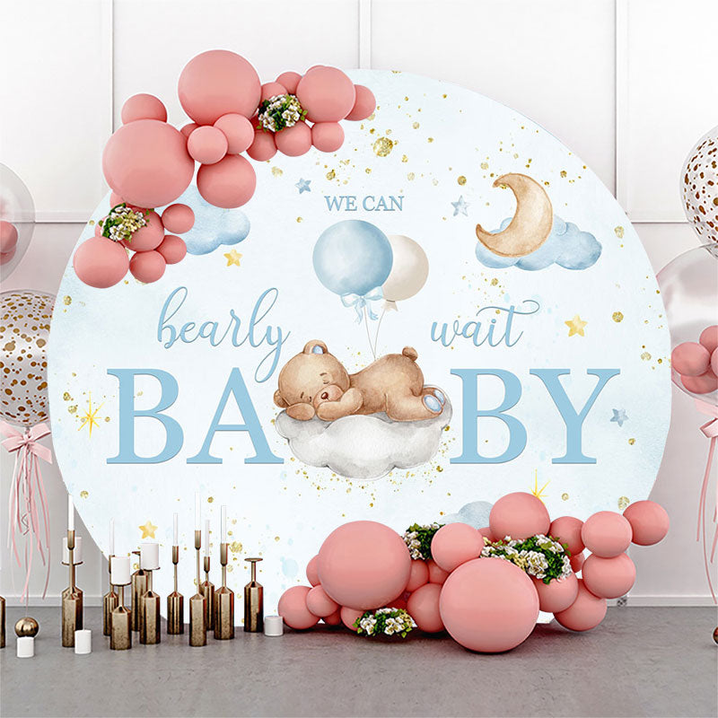 Funkeln Teddy Tragen Blau Runden Hintergrund Für Babydusche