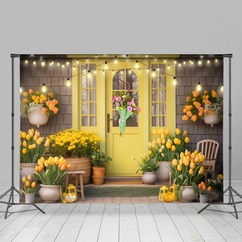 Gelb Tulpe Blumen Tür Regenschirm Frühling Hintergrund