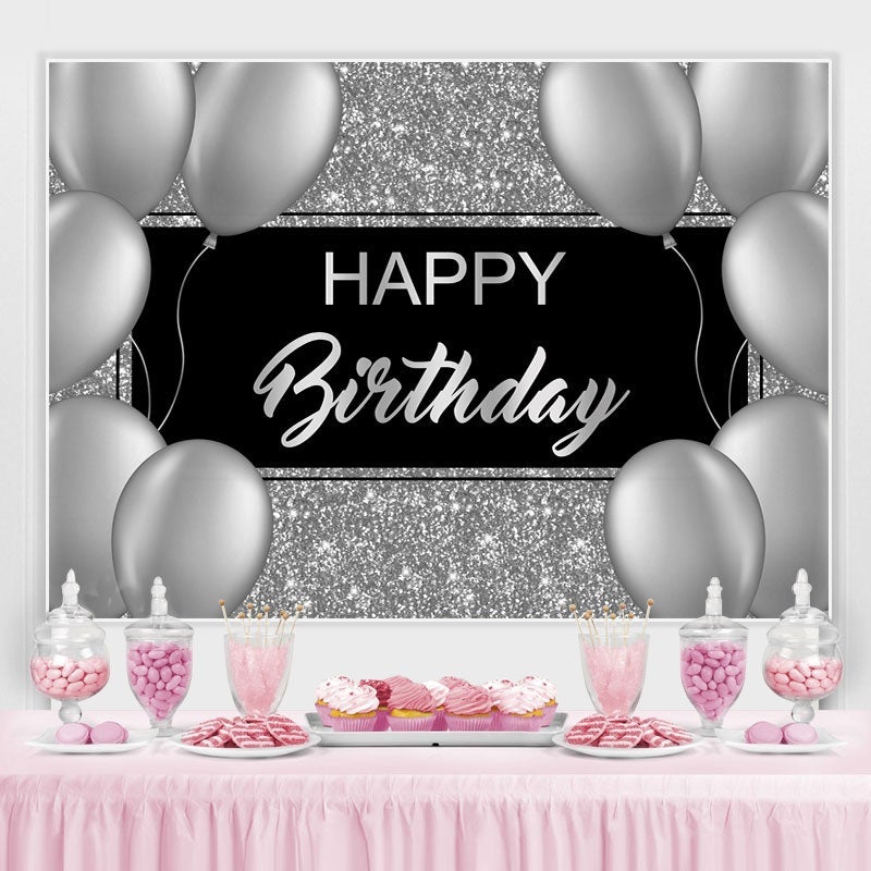 Glänzend Silber Und Gery Luftballons Geburtstag Hintergrund