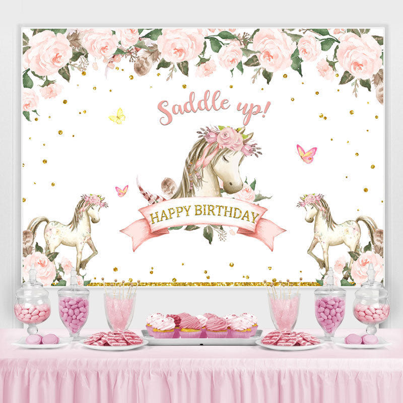 Glücklich Geburtstag Sattel Hoch Pferd Rosa Blume Themenorientiert Hintergrund