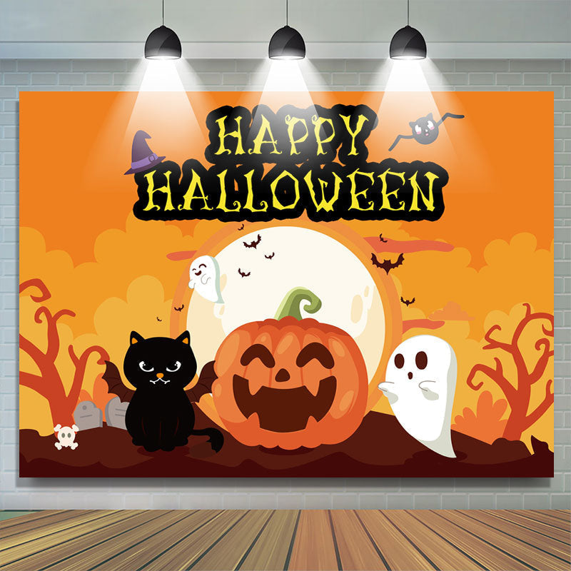Glücklich Halloween Kürbis Karikatur Schläger Katze Hintergrund für Kind Party