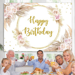 Gold Funkeln Blumen Feder Glücklich Geburtstag Hintergrund