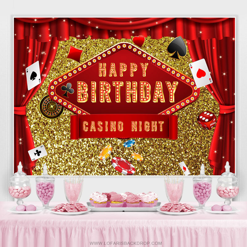 Gold Funkeln Und Rot Vorhang Glücklich Geburtstag Hintergrund