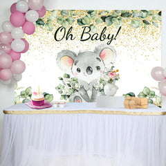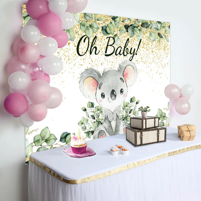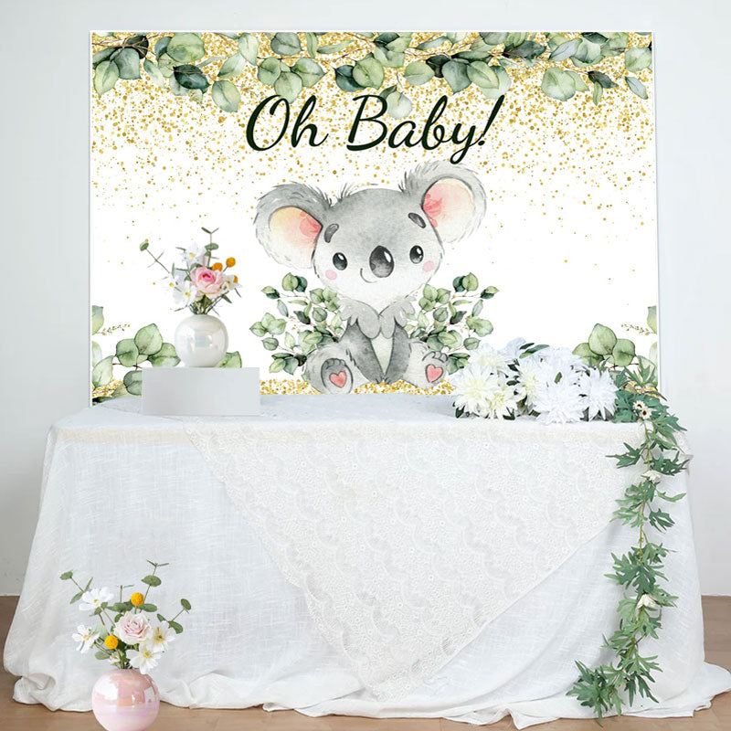 Gold Grün Blätter Koala Baby Dusche Hintergrund