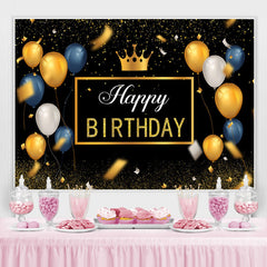 Gold Und Blau Luftballons Schwarz Funkeln Geburtstag Hintergrund