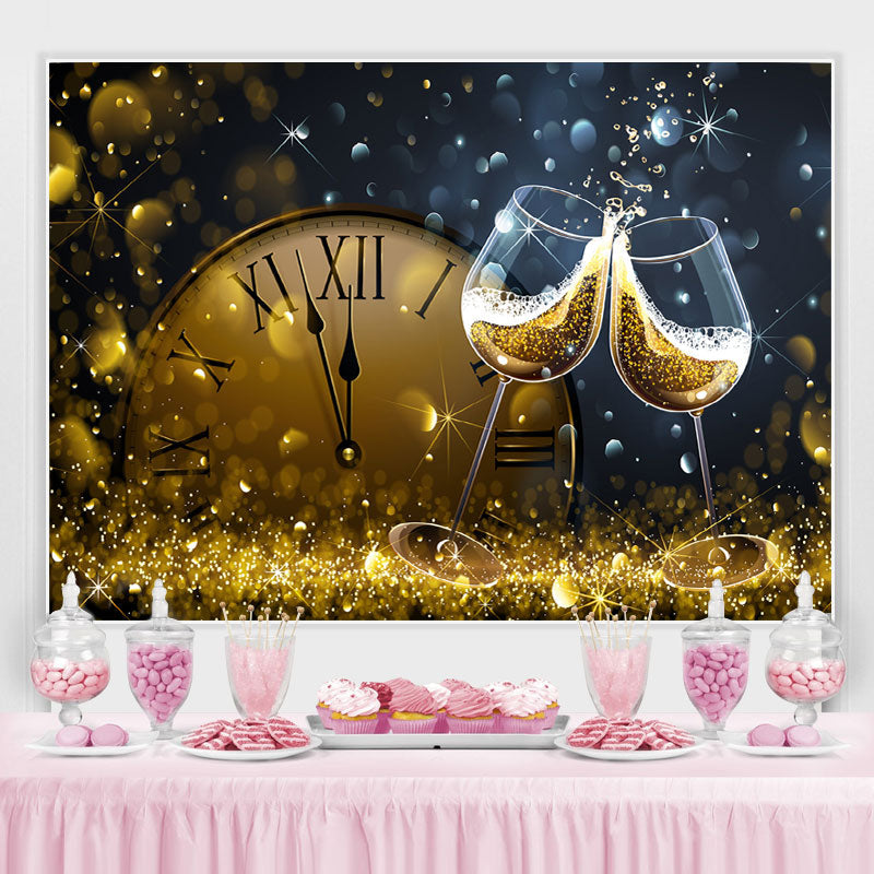 Gold Wein Gläser Und Uhr Bokeh Geburtstag Hintergrund