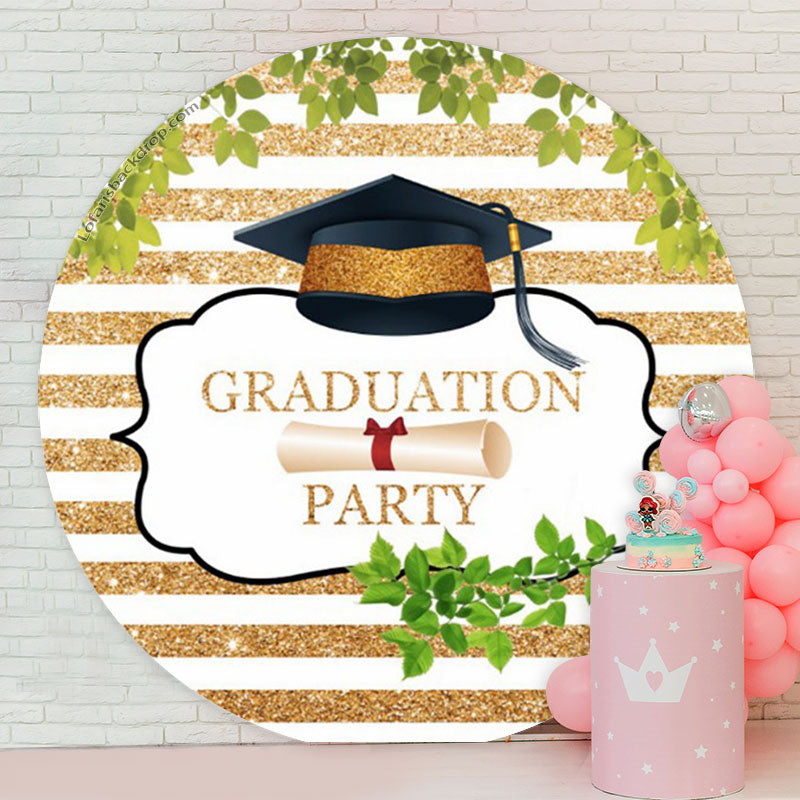 Gold Weiß Streifen Blätter Runden Grad Party Hintergrund