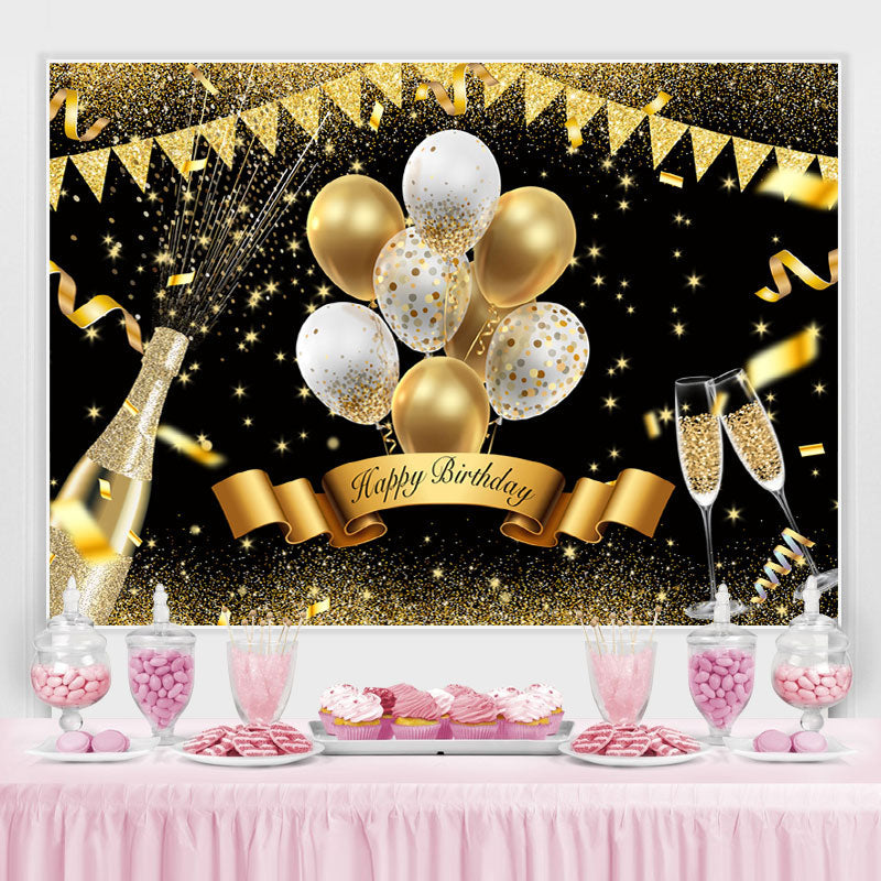 Golden Funkeln Und Weiss Ballon Glücklich Geburtstag Hintergrund