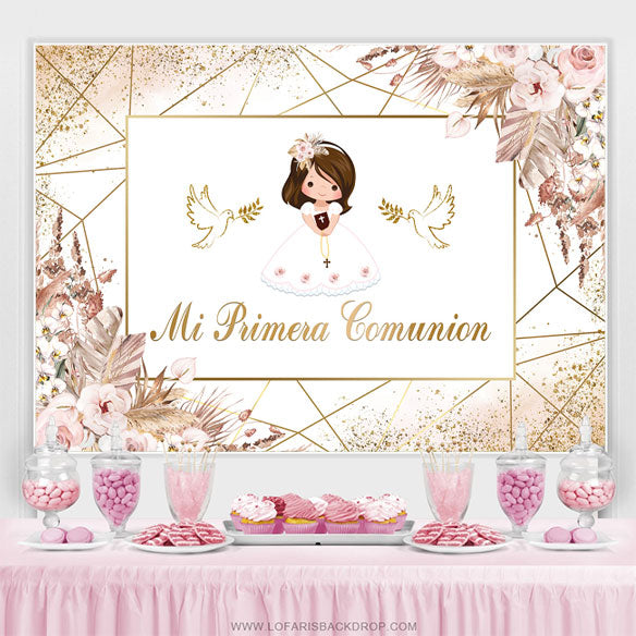 Golden Linie Taube Blumen Babydusche Hintergrund Für Mädchen