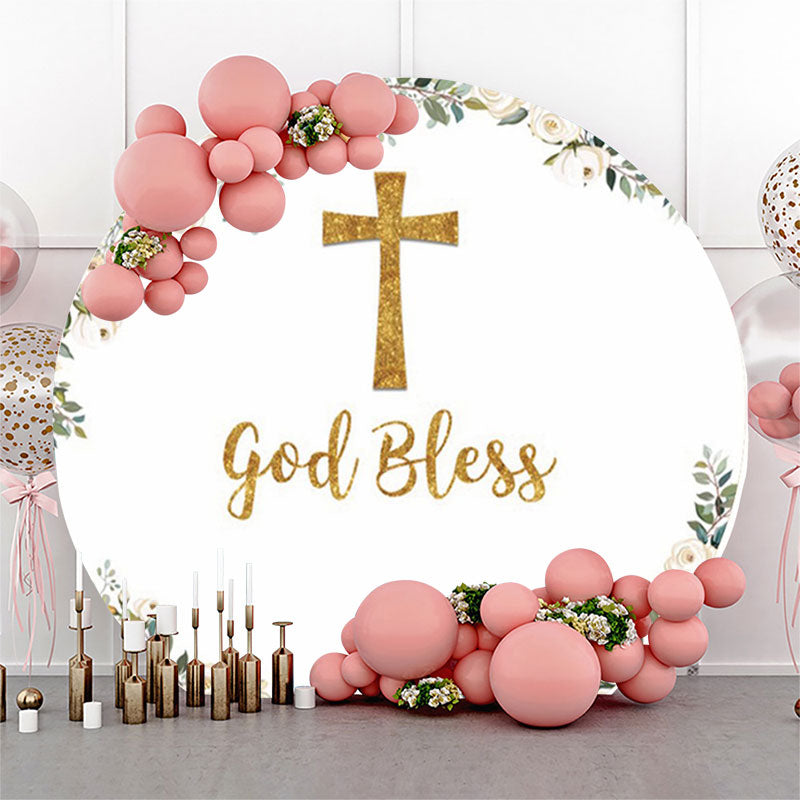Gott Segnen Blumen Blätter Taufe Runden Hintergrund