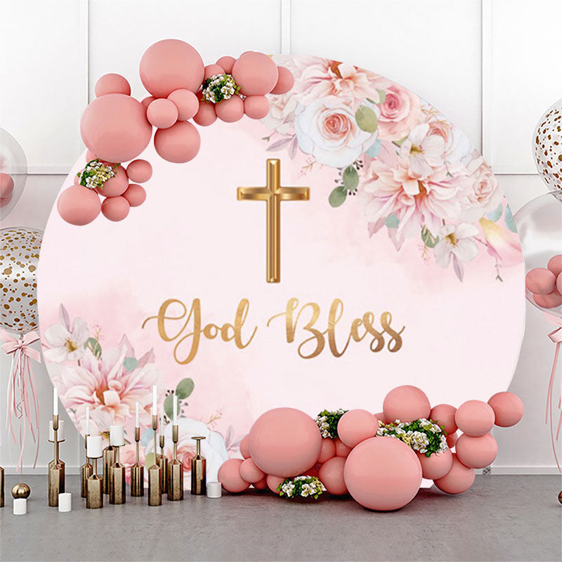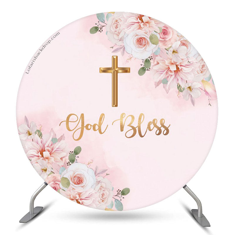 Gott Segnen Rosa Blumen Runden Hintergrund Für Taufe