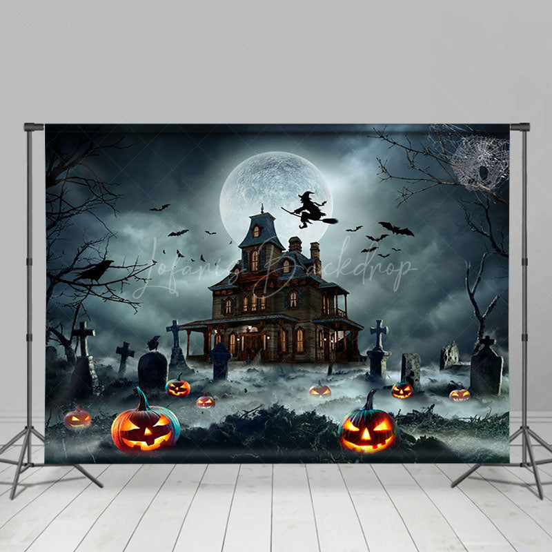 Grab Herrenhaus Hexe Mond Nacht Kürbis Glücklich Halloween Hintergrund