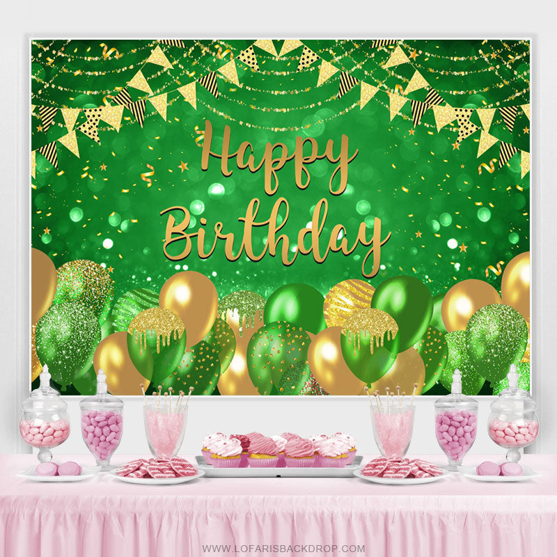 Grün Ballon Flagge Bänder Glücklich Geburtstag Hintergrund