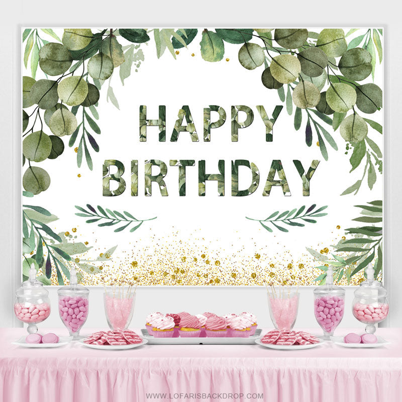Grün Blätter Mit Golden Punkte Glücklich Geburtstag Hintergrund