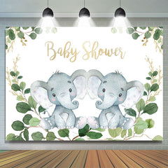 Grün Blätter Und Elefanten Baby Dusche Hintergrund