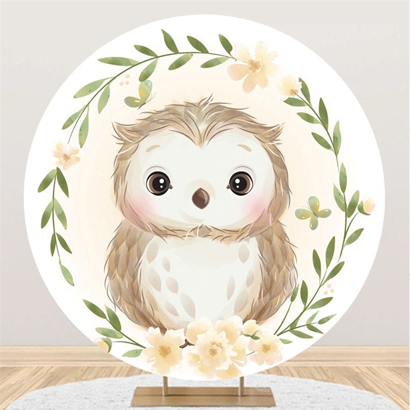 Grün Blätter Und Eule Blumen Themenorientiert Runden Hintergrund