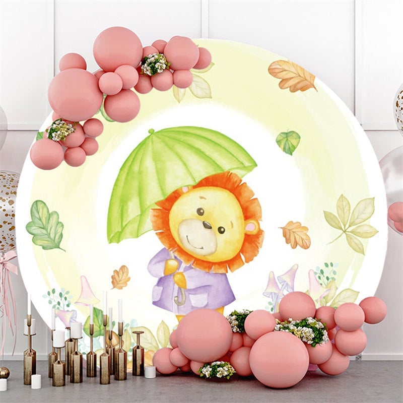 Grün Blätter Und Löwe Runden Regenschirm Baby Dusche Hintergrund