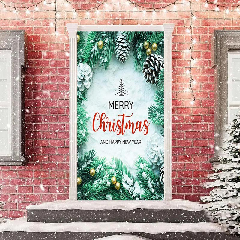 Grün Glücklich Neu Jahr Fröhlich Weihnachten Tür Abdeckung