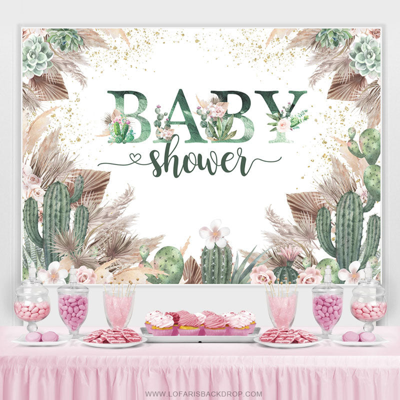 Grün Kaktus Blumen Boho Babydusche Hintergrund