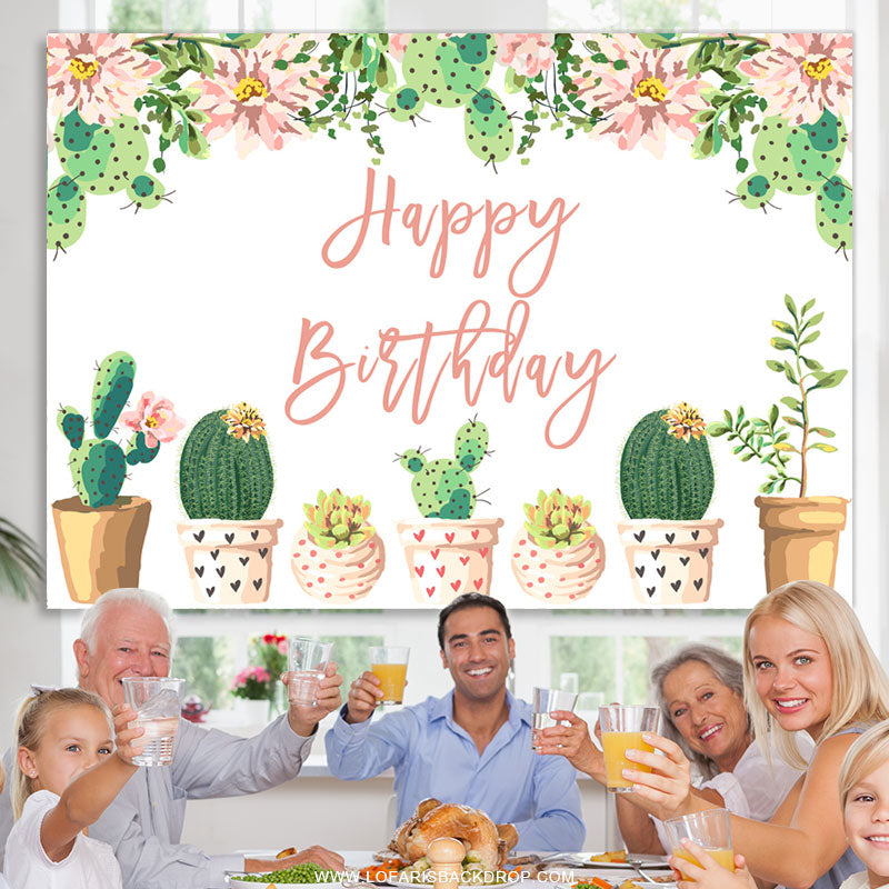 Grün Kaktus Blumen Glücklich Geburtstag Hintergrund Für Weiblich