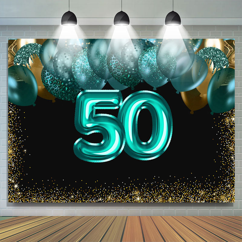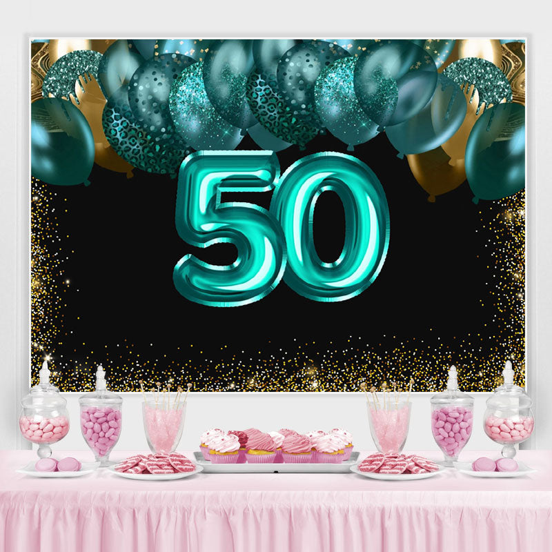 Grün Luftballons Golden Bokeh 50 Geburtstag Hintergrund