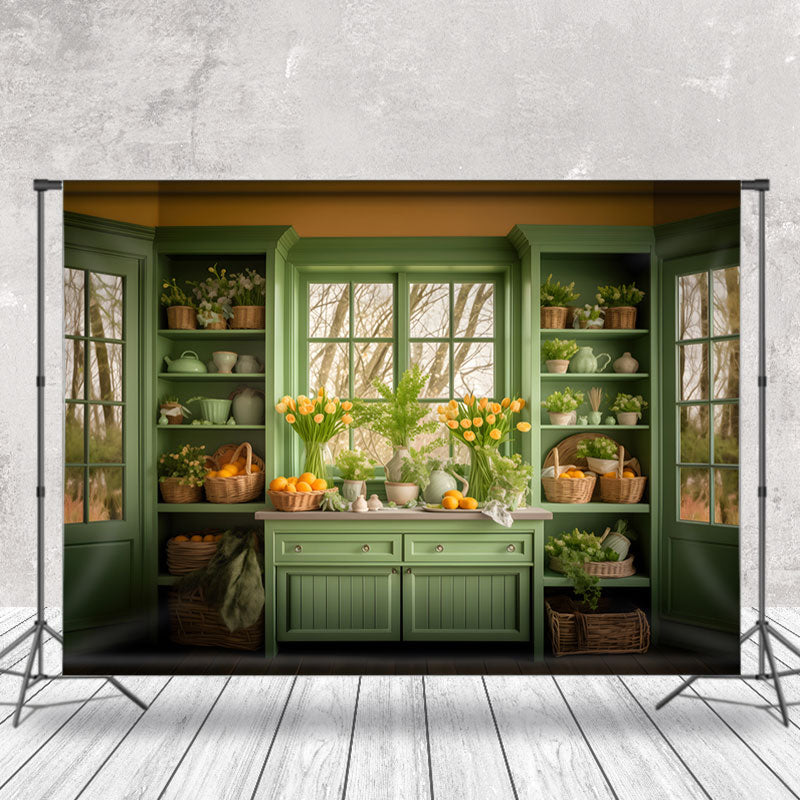 Grün Regal Gelb Ei Blumen Fenster Ostern Hintergrund