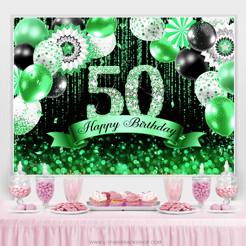 Grün Schwarz Luftballons Funkeln 50 Geburtstag Hintergrund