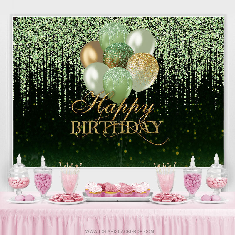 Grün Und Gold Funkeln Luftballons Glücklich Geburtstag Hintergrund