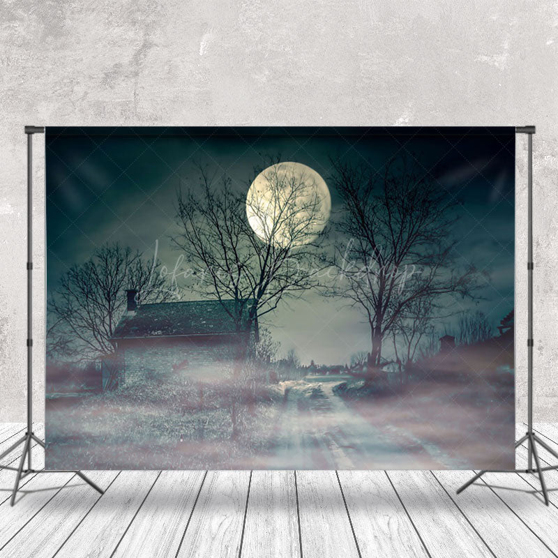 Gruselig Dorf Mond Bei Nacht Halloween Hintergrund