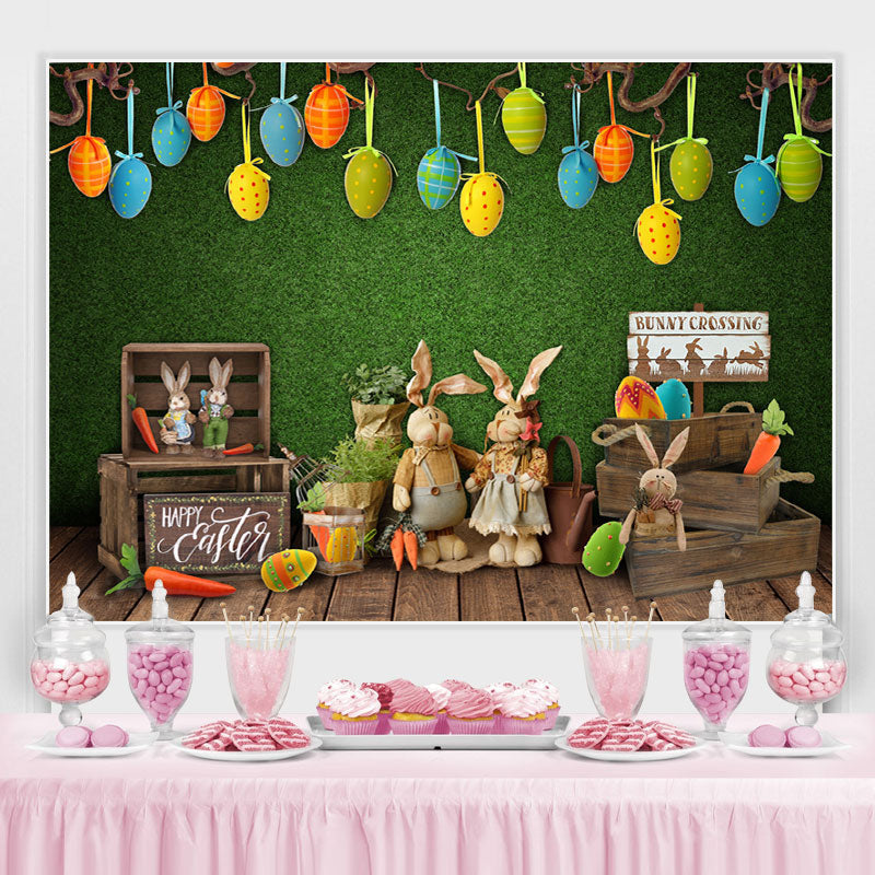 Hase Kreuzung Und Holz Kasten Grün Baby Dusche Hintergrund