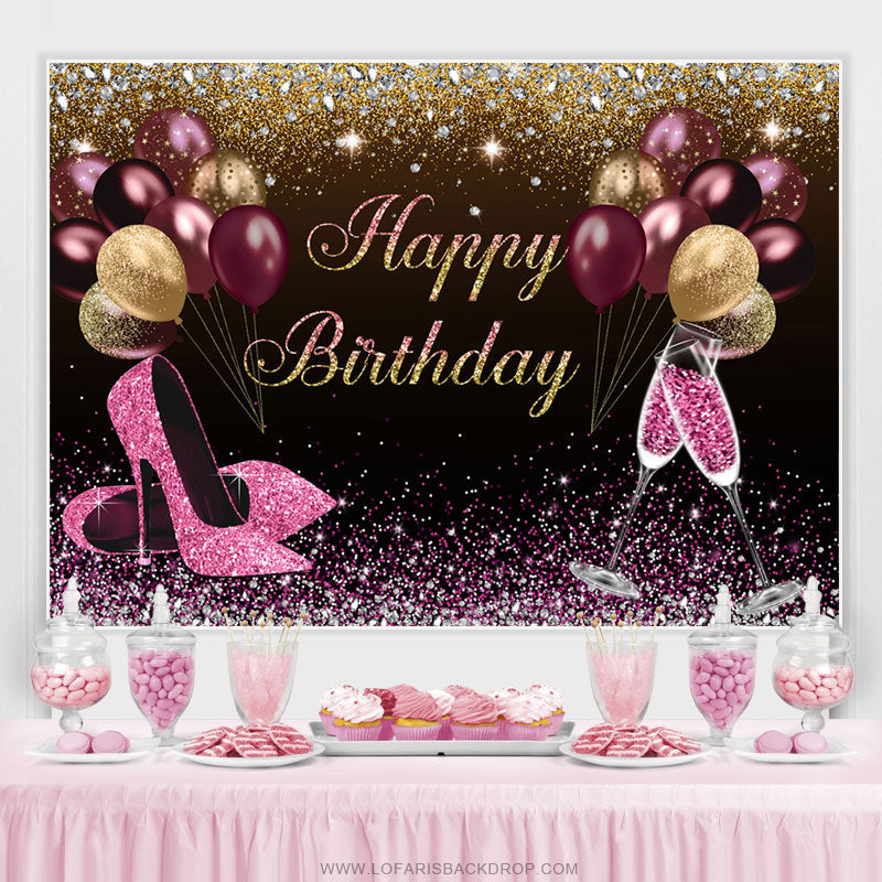 Heiß Rosa Und Gold Funkeln Luftballons Geburtstag Hintergrund