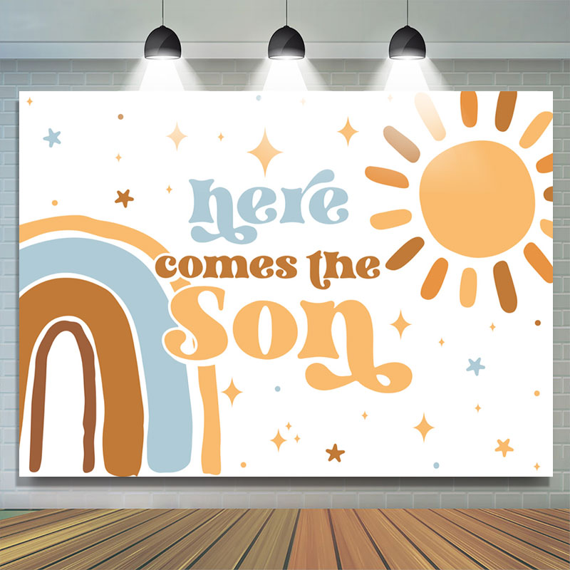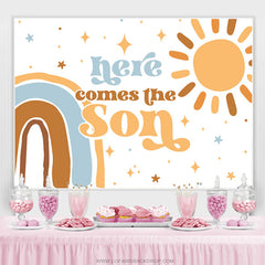 Hier Kommt Der Sohn Regenbogen Babydusche Hintergrund