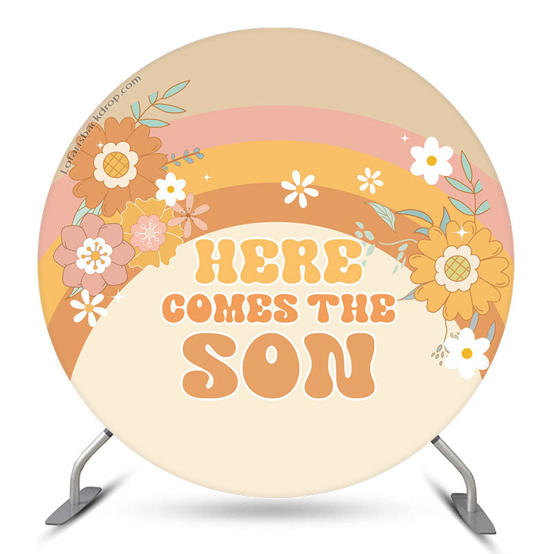 Hier Kommt Sohn Regenbogen Blumen Runden Babydusche Hintergrund