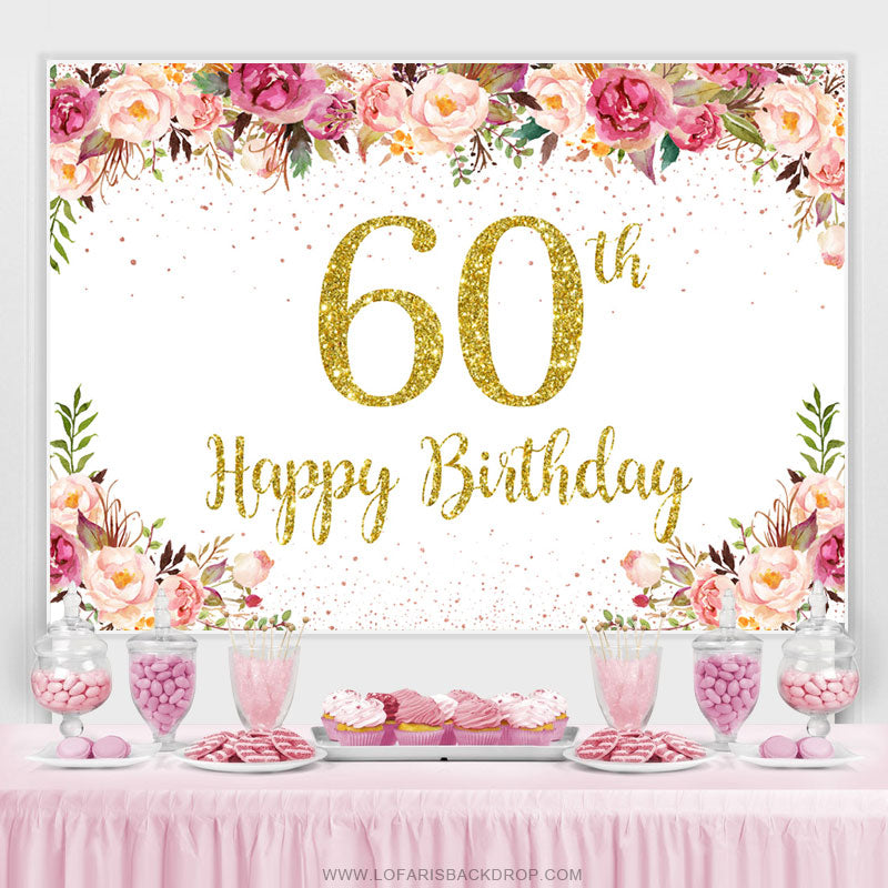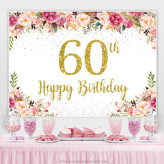 Hintergrund zum 60. Geburtstag mit goldenem funkeln und rosa Blumenmuster