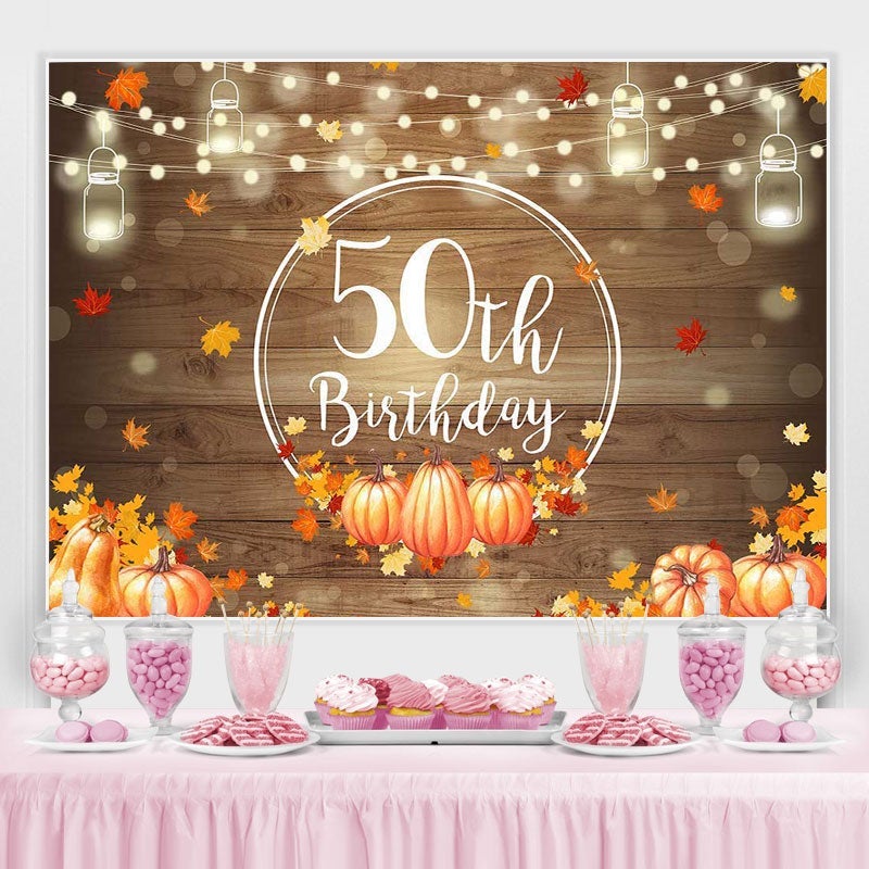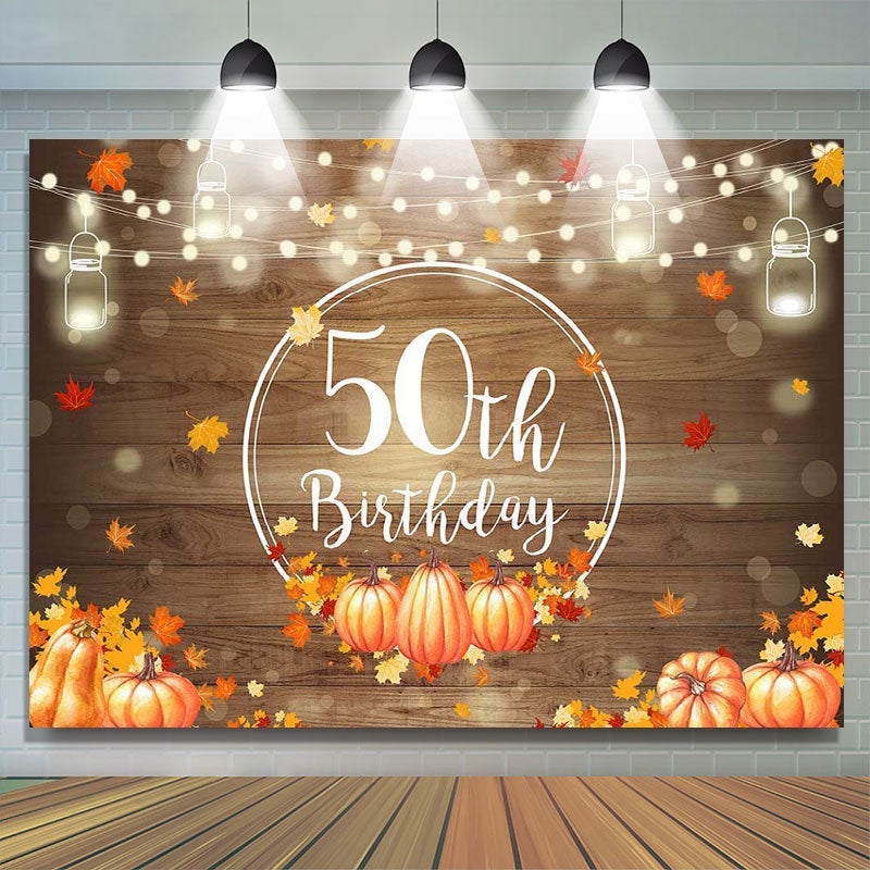 Holz Kürbisse Ahorn Blätter Glücklich 50 Geburtstag Hintergrund